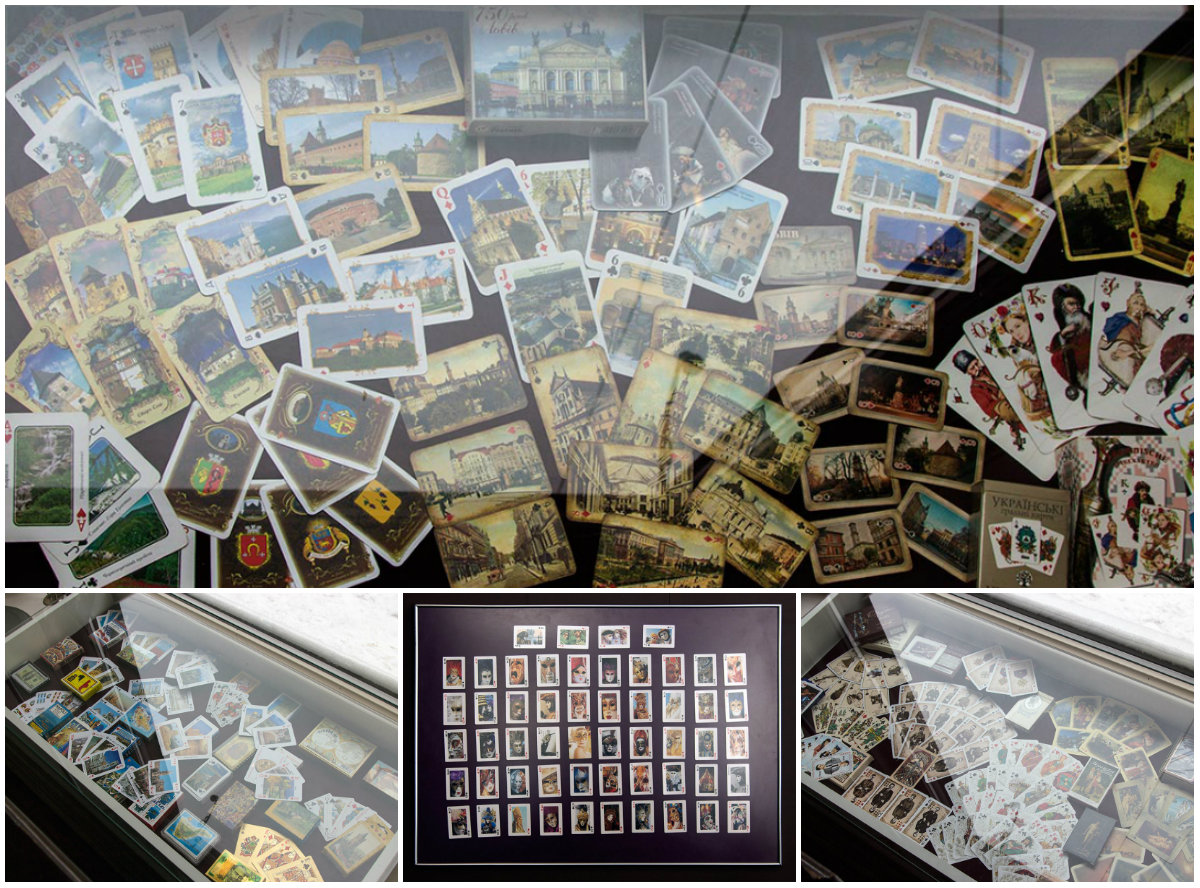 Цікаво розглядати колоди карт з різних частин світу. На них можна побачити венеціанські маски, музеї та пам’ятки Барселони, прекрасні краєвиди Голландії, чудово оформлені карти з Австралії. В експозиції можна побачити колоди також з таких країн як Греція, Туреччина, Єгипет, Болгарія, Італія, Ірландія, Німеччина, Австрія та інших.