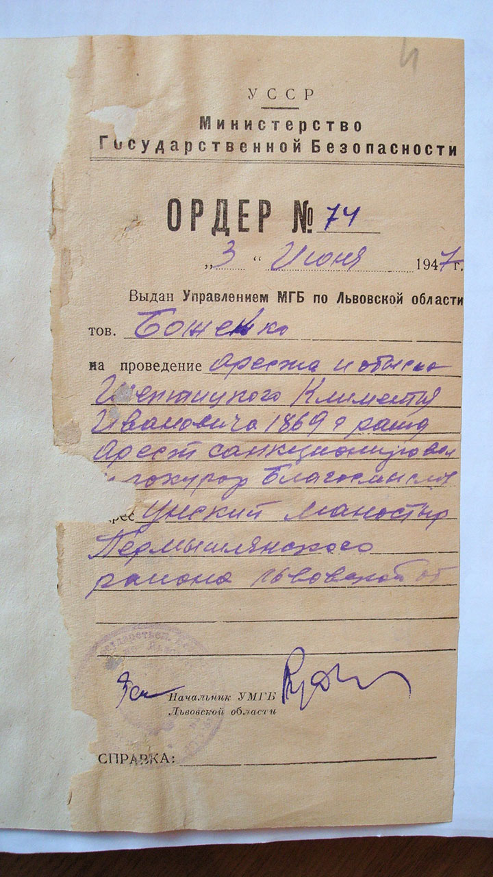У зв’язку з ліквідацією греко-католицької церкви та всіх її адміністративно-церковних органів, вважаємо політично доцільним та цілком своєчасним поставити питання про ліквідацію всіх греко-католицьких монастирів, яку треба закінчити в першому півріччі 1950 року. [Цит. за: Боцюрків Б., Українська Греко-Католицька Церква і Радянська держава…— С. 169–171; ЦДАГО. — Ф. 1. — Оп. 24. — Спр. 783. — Арк. 267-268.]