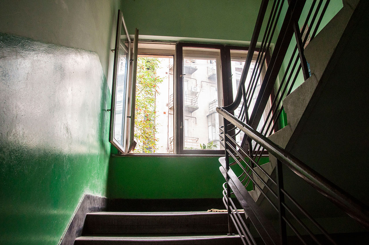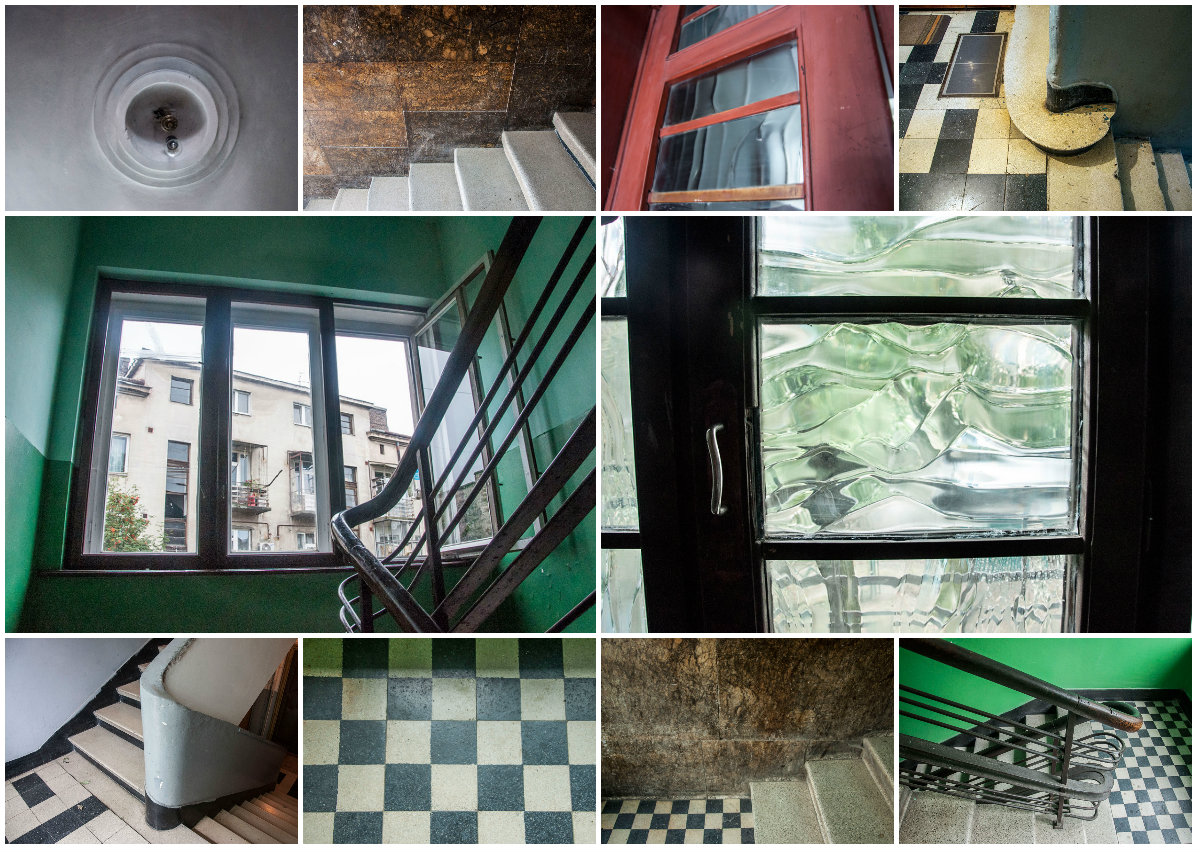 Серед інших складових декору таких будинків – різні фактури тиньку та двері до квартир, розмір та малюнок вікон. Багато означає і денне світло, що дістається крізь вікна і м’яко освітлює під’їзд.