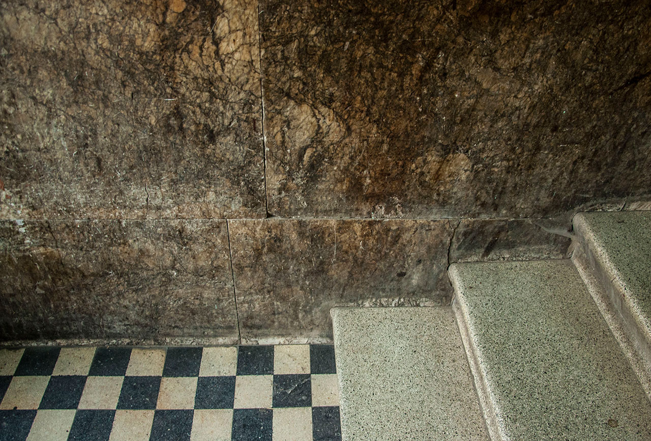 Внутрішня частина кам’яниці особливо варта уваги. Ввігнуті вхідні сходи облицьовані темним і світлим алебастром. Виходить своєрідний малюнок з відтінків, що добре гармоніює з чорно-білою плиткою на підлозі під’їзду.