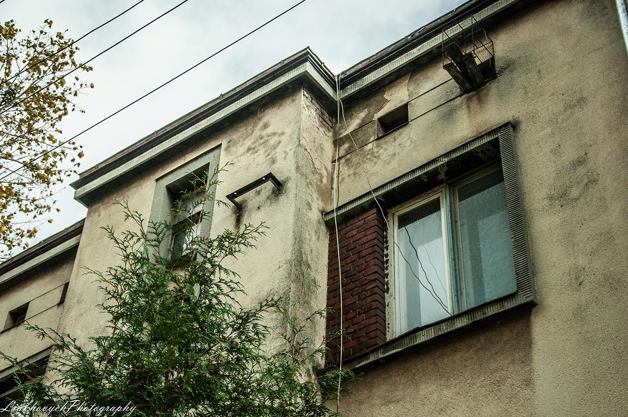 Старі функціоналістичні кам’яниці стоять покинуті , з розбитими вікнами та потрісканими фасадами.