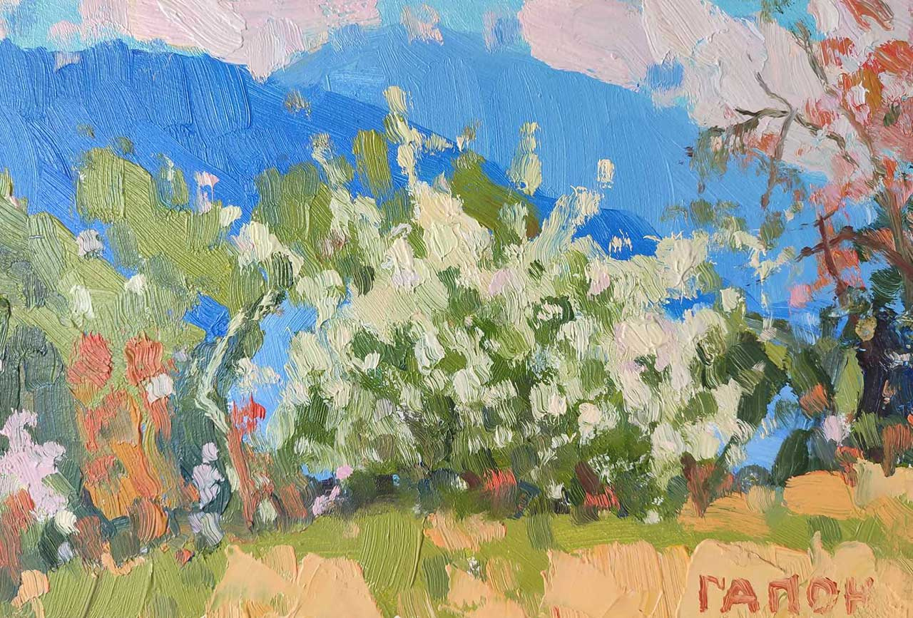 “Криворівня – це мальовниче село в горах, куди я їжджу на етюди уже сорок років. Представлені роботи виконані в Криворівні за останні кілька років. Жіночі портрети написані там, в Музеї Івана Франка, де збережена кімнатка в стилі часу, коли там відпочивав Іван Франко. Там гарний інтер’єр – старий гуцульський одяг, посуд, гуцульська піч і коли я приїжджаю, то малюю там портрети гуцулів. Одягаю їх в національний стрій і малюю”, – розповідає Ігор Гапон.