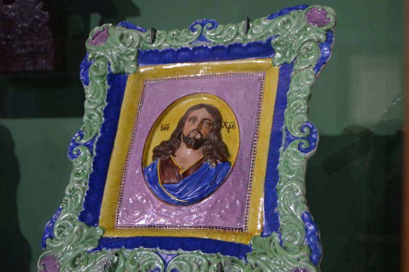 До асортименту культових виробів належать також «хатні» ікони для домашнього вжитку. Найбільше у колекції музею ікон із сюжетом «Воскресіння». На них зображений Ісус Христос, який здіймається над відкритою трумною зі стягом у правій руці. До сюжетного ряду ікон Києво-Межигірської фабрики належать «Богоматір», «Тайна вечеря», «Свята Варвара», «Свята Софія». Представлені зразки ікон доволі прості за рівнем виконання, оскільки продукувалися виключно на місцевий ринок, а виготовленням і розписом займалися не іконописці, а майстри фаянсу.