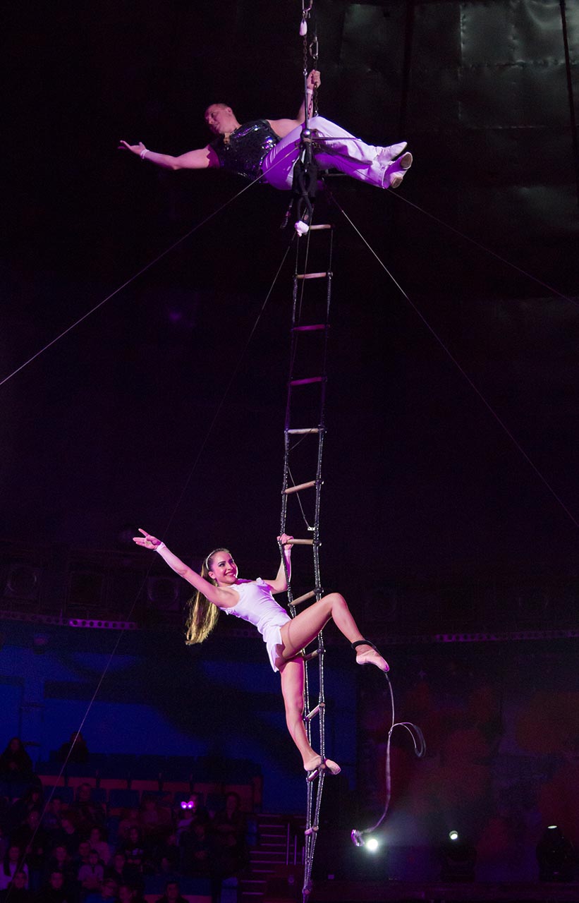 Шанувальники екстремальних номерів мліли від виступів повітряних гімнастів Олександра та Людмили Літічевських, гімнастів на турніках під керівництвом Володимира Єрьоменка та від колеса сіра Євгена Крота.
