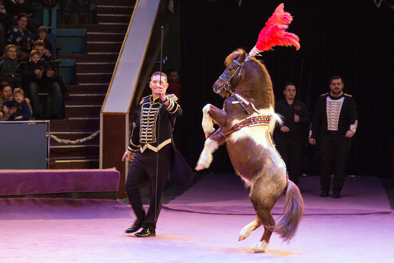 Найменші відвідувачі прем’єри захоплено аплодували верблюдам і зебрам, собакам і котикам, коням і левам, і, звичайно, нікого не залишила байдужим бегемотиха на ім’я Шоколадка.