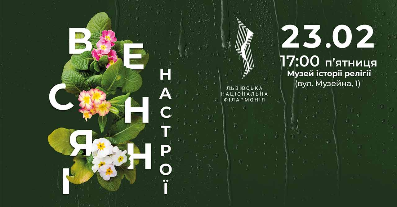 У останній день зими запрошуємо відзначити постать видатного львів’янина, митця та художника Тараса Драгана. Виконавці Назарій Пилатюк, Володимир Заціха (скрипка), Устим Жук (альт), Тарас Менцінський (віолончель), Денис Маркевич (контрабас), а також Мирослав Драган та Оксана Рапіта (фортепіано) представлять твори Василя Барвінського, Миколи Лисенка та Клода Дебюссі.