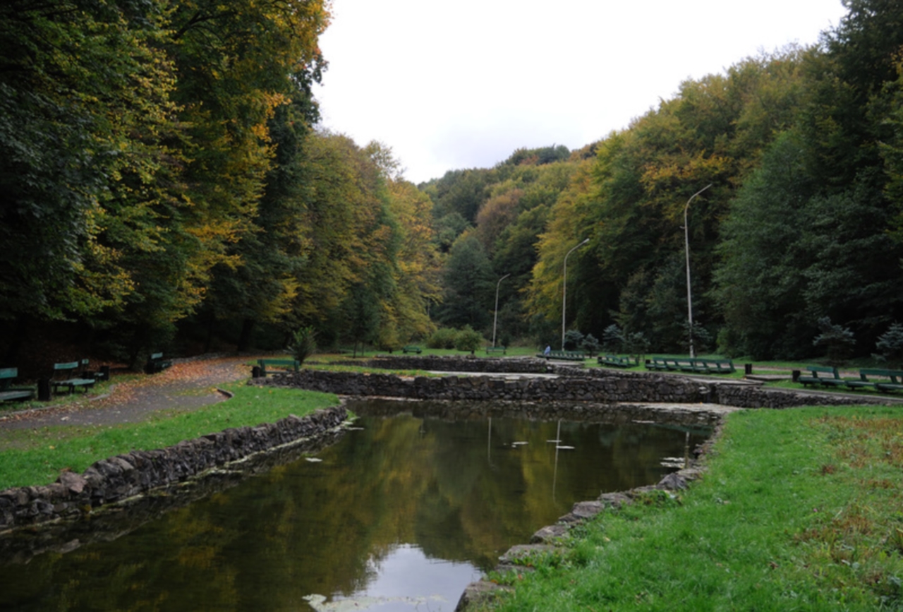 Найпершим об’єктом, на який ви наштовхнетесь в лісі стане давній водозбірник. Виявляється, Погулянка була колись не просто заміськими ланами чи зоною відпочинку й розваг. Велика кількість джерел ще з XV ст. зробило її основним постачальником води місту. Не дарма ж сусідня до парку вул. Левицького колись звалась «На рурах» – саме по ній йшов водопровід від Погулянки до міста. Збережений до сьогодні водозбірник хоча й не з XV ст., однак теж доволі давній. Зведено його в 1839 році. Фасад цієї споруди, яка іменується ще як “brensztube”, оздоблюють вирізьблені постаті німф. На жаль, ця історично цінна споруда ніяк не охороняється нашим містом, а тому давно перетворилася на місце для мусору, відходів і т.п.