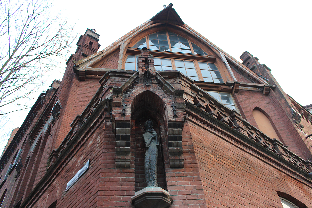 Біля входу – меморіальна дошка Новаківського (встановлена у 1972 році, скульптор Еммануїл Мисько), а у наріжній ніші у 2010 році встановлено скульптуру Божої Матері авторства Романа Петрука. Частину приміщень займає Художньо-меморіальний музей Олекси Новаківського.