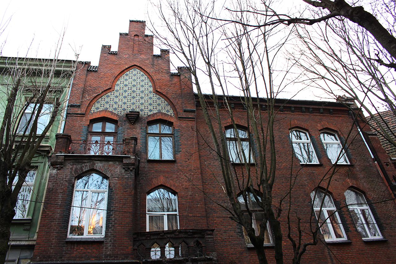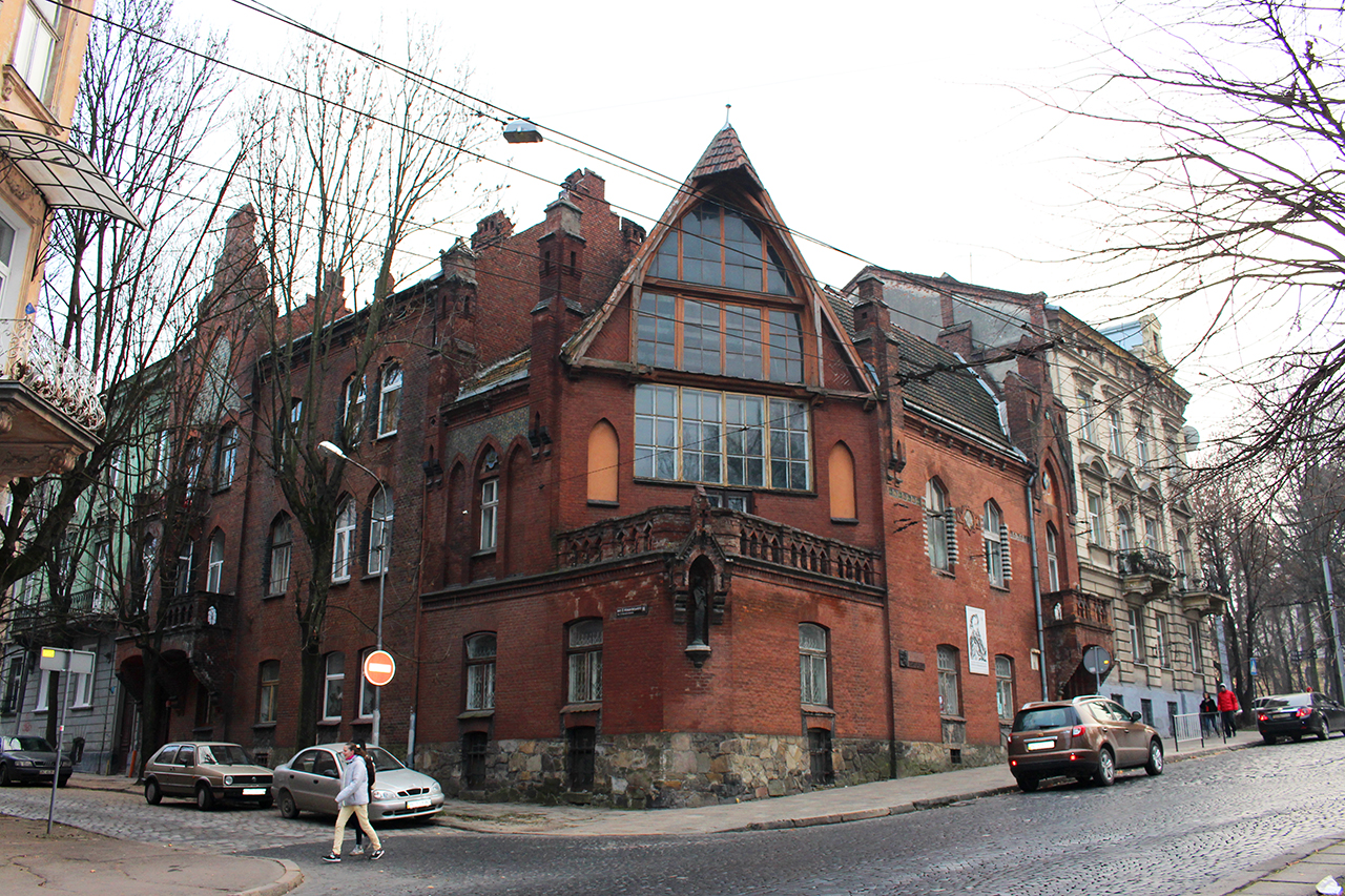 Мальовничий будинок із червоної цегли під кольоровою дахівкою на розі вулиць Листопадового Чину, 11, та Олекси Новаківського збудований у 1889 році Іваном Левинським за проектом Юліана Захаревича (1837-1898) для художника Яна Стики, польського художника, автора картин на біблійні й історичні теми.