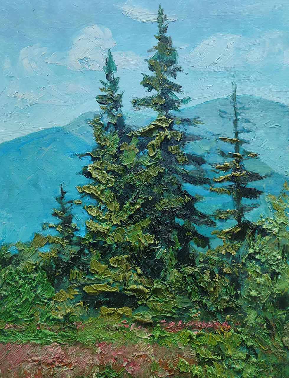“Цьогоріч я виставив роботи на карпатську тематику. Я давно їжджу в Карпати, в Славське, малюю там, а потім тут у майстерні. Для виставки відібрав 12 робіт. Експозиція гарна, так що запрошую львів’ян приходити та дивитися”, – каже художник.