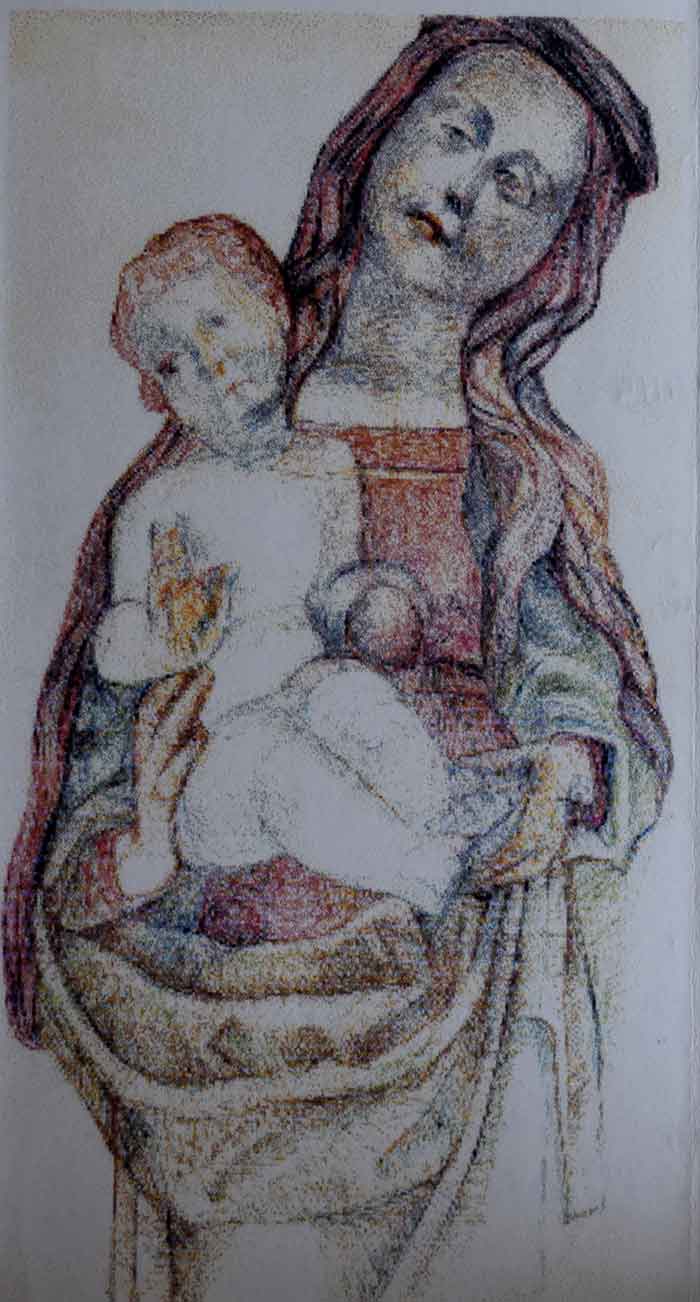 …Хронологічно останнім з відомих на сьогодні його творів став виконаний в авторській техніці малюнок «Богородиця з Дитям» (1995). При іншій, аніж у попередньо розглянутих картинах, концепції пластичної форми він став ще одним виміром багатого естетичного світогляду художника, а також свого роду квінтесенцією морально-ціннісних та етичних принципів його життя. Відійшов у Вічність Володимир Прокуда 16 серпня 2008 року в Нью-Джерсі (New Jersey), залишивши чимало загадок своїх мрій та небуденного творчого таланту.
