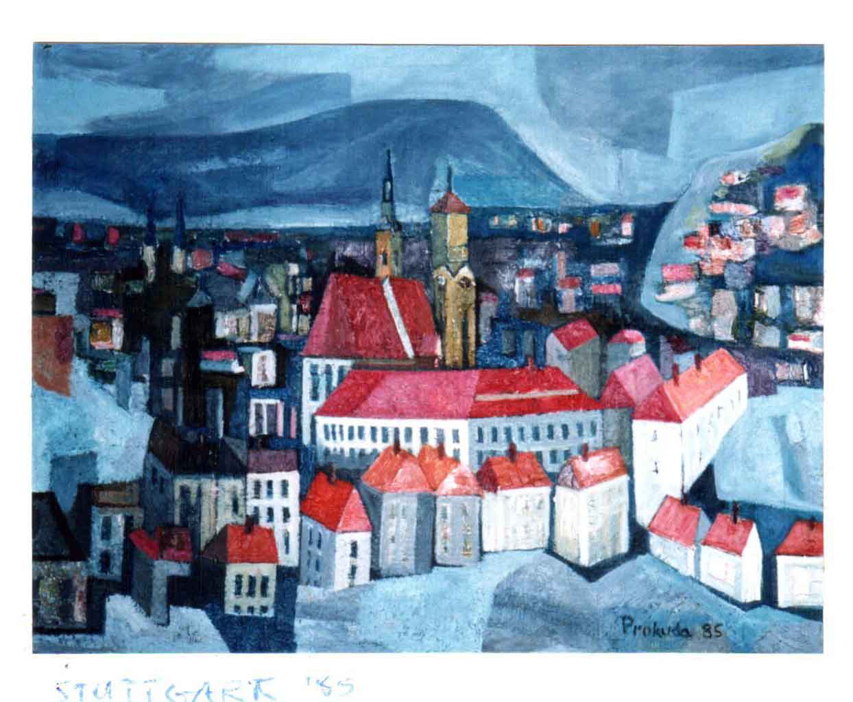 Поза сумнівом, що визнання мистцем таких джерел інспірацій стосувалося широкого поля творчих досвідів, які на сьогодні є важкодоступними. Натомість навіть окремі з них підтверджують, що Володимир Прокуда покроково виробляв оригінальну та гнучку пластично-образу мову, застосовуючи її у відповідності до тих чи інших задач. Ще одним підтвердженням того є оформлені ним сторінки поетичної збірки Юрія Тарнавського «Місто» (1964) з мінімалістичною естетикою та концептуальним поєднанням абстрагованих графічних віньєток зі шрифтом. А вже 1972 року нью-йоркська «Panoras Gallery» запросила його на індивідуальну виставку з видами цього міста. Його близький колега, художник і критик Юрій Соловій зреагував на цю подію проникливим аналітичним текстом, звернувши увагу як на творчо-мотиваційні, так і на методологічні особливості автора. Так, зокрема, він зачислив В. Прокуду до категорії мистців, «що не поспішають, що роблять обережні рішення і ставлять високі вимоги супроти своєї творчості» [15]. Далі він звернув увагу на те, що «образи Прокуди мають моторошний аромат мареного світу. Техніка неначе олов’яного матеріалу чи якоїсь лави з апокаліптичною передісторією і такий в більшості олов’яно-сірий кольорит підсилюють це враження пів-сну. Ці ландшафти перебувають на загадковій межі – на межі поставанням і загибеллю; важко встановити стадію процесу, що властиво повинно сейчас настати: рух до життя, чи рух до остаточного апокаліптичного загину; чи ця олов’яна мряка, що зависла над Прокудиним світом, скоро розплинеться, чи краєвид опанує ще густіша й умертвлююча завіса?» [16].