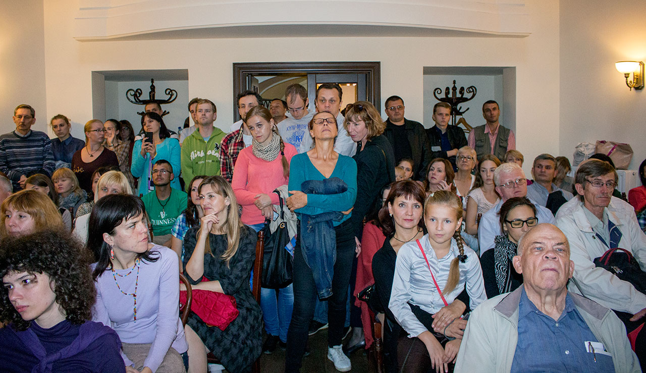 Конференц-зала готелю заледве вмістила всіх охочих прослухати виступ, багато хто з відвідувачів сиділи прямо на підлозі. Володимир В’ятрович розповідав про те, якою мусить пам’ятати Другу світову війну Україна і чому наявність своєї пам’яті про ту війну в Україні так дратує Кремль.