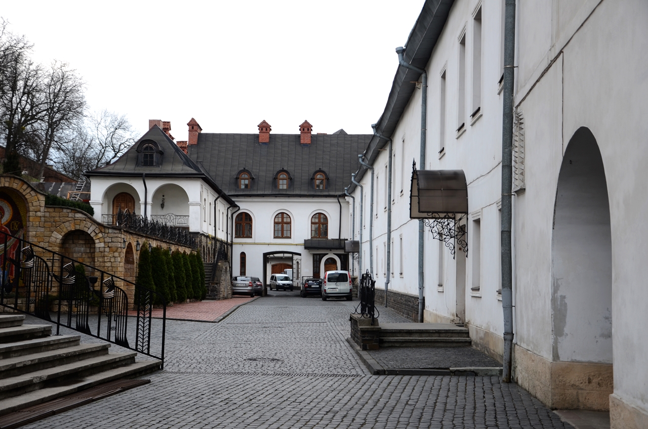 Найстарішою будівлею вулиці є церква св. Миколая (вул. Б. Хмельницького, 28). Вона мурована з тесаних блоків білого вапняку не пізніше другої половини XIII ст. у традиціях давньої галицької архітектури. До наших днів церква дійшла після численних перебудов. Фрески головного фасаду виконав Петро Холодний-старший у 1924 році. Трохи далі чоловічий Василіянський монастир при церкві св. Онуфрія (вул. Б. Хмельницького, 36). Цей храм споруджено біля підніжжя Замкової гори, на місці дерев’яної церкви княжих часів. Церква кілька разів перебудовувалася. В ній є іконостас пензля Модеста Сосенка з 1908 року. У 1820 р. збудовано муровану, квадратну в плані, чотириярусну дзвіницю, під якою у ніші була фігура Св. Онуфрія.