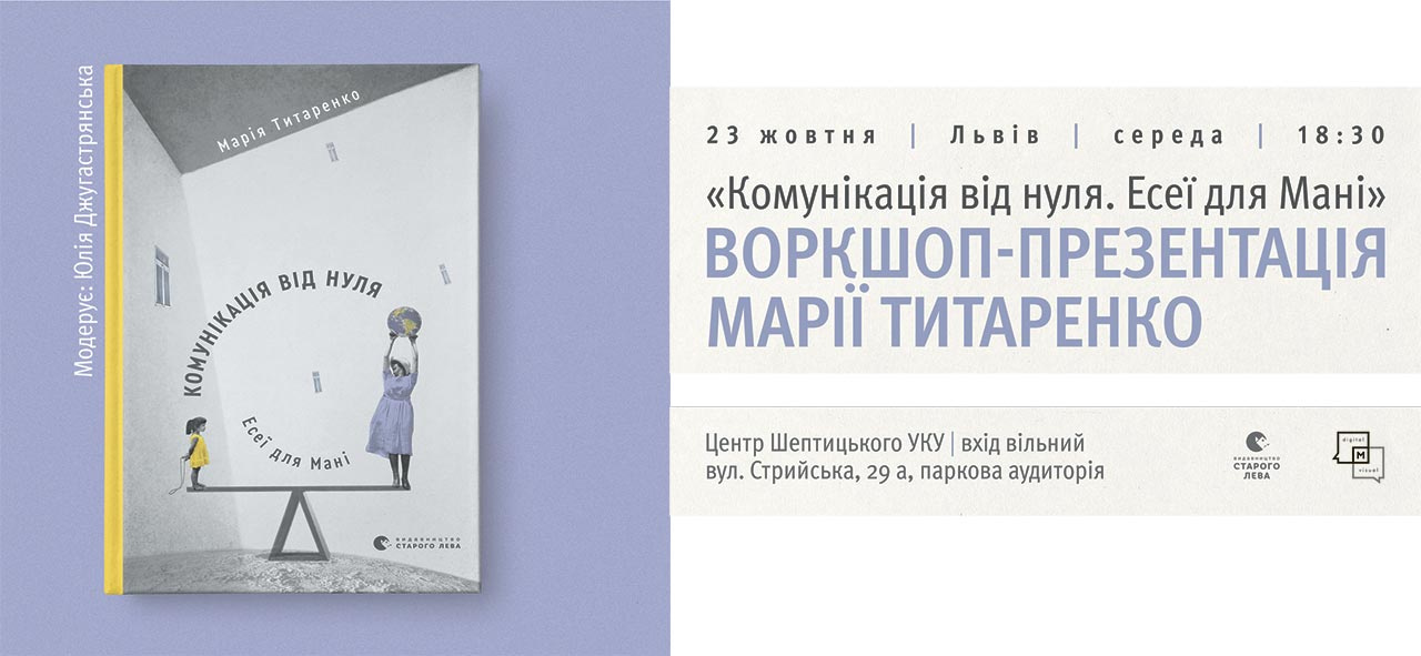 На воркшопі-презентації говоритимемо про феномен комунікації від нуля та розглянемо низку цікавий кейсів. Відтак відвідувачі матимуть чудову нагоду повправлятися у спілкуванні без вуст, очей і вух. Почути, як співає чайник. Висловитись, поки горить сірник. Стати співтворцем справжньої комунікаційної павутинки. Чекаємо всіх у середу, 23 жовтня о 18.30 в Центр Шептицького УКУ (вул. Стрийська, 29 а, паркова аудиторія). Модератор: Юлія Джугастрянська. Вхід вільний.