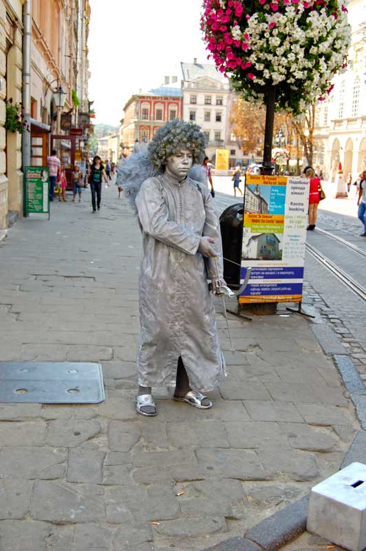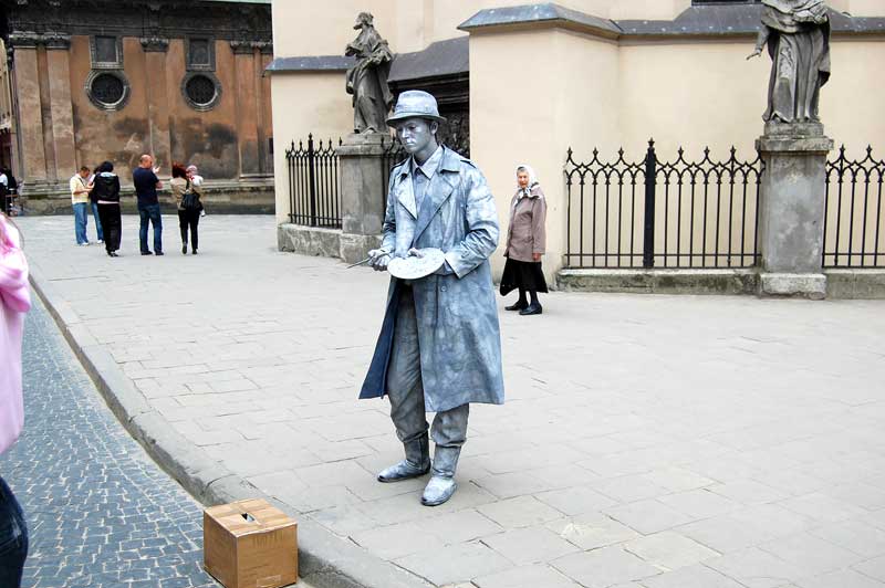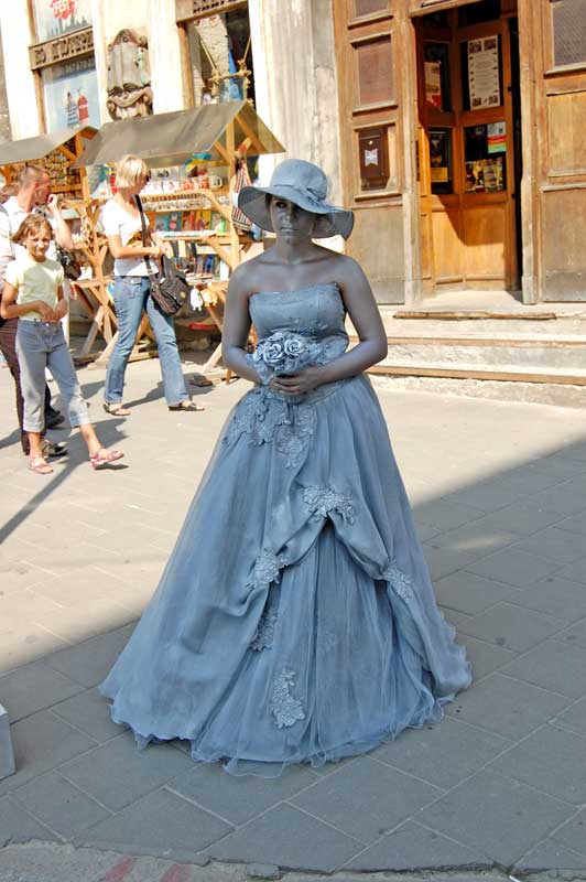І, поряд з вуличними музикантами, часто можна побачити і мімів в різноманітних загадкових образах замріяних художників, смішних купідонів чи вишуканих панянок.