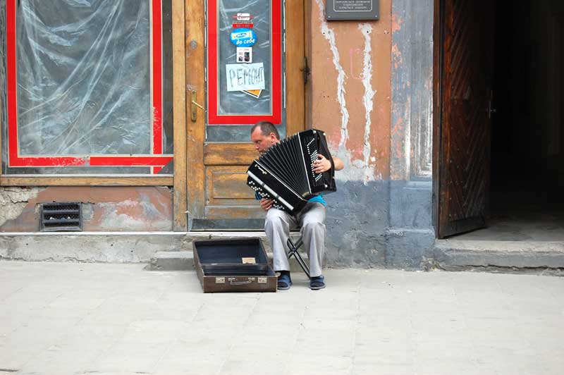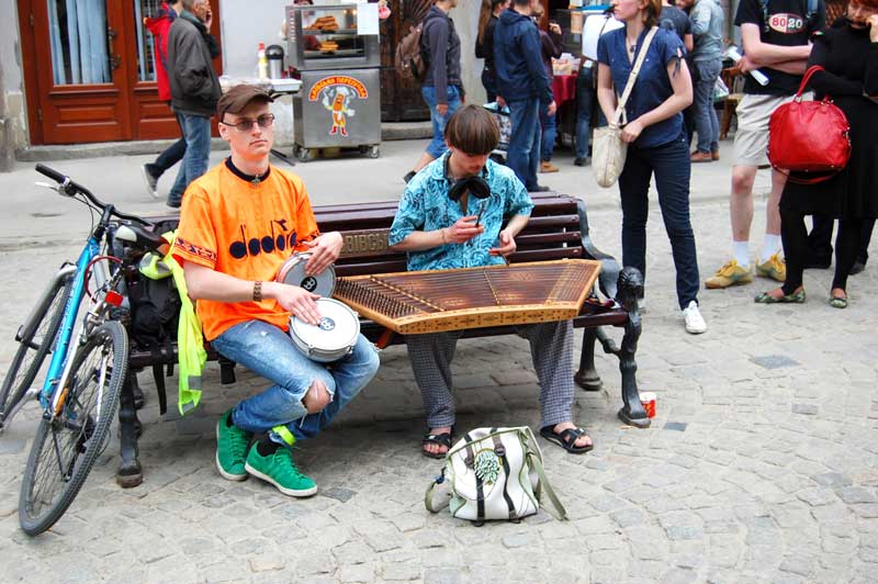 Але вуличних музикантів, мабуть, найбільше. Від скрипки, до барабана, від баяна і до різноманітних волинок і тальянок – все це можна кожного дня зустріти на вулицях нашого міста.