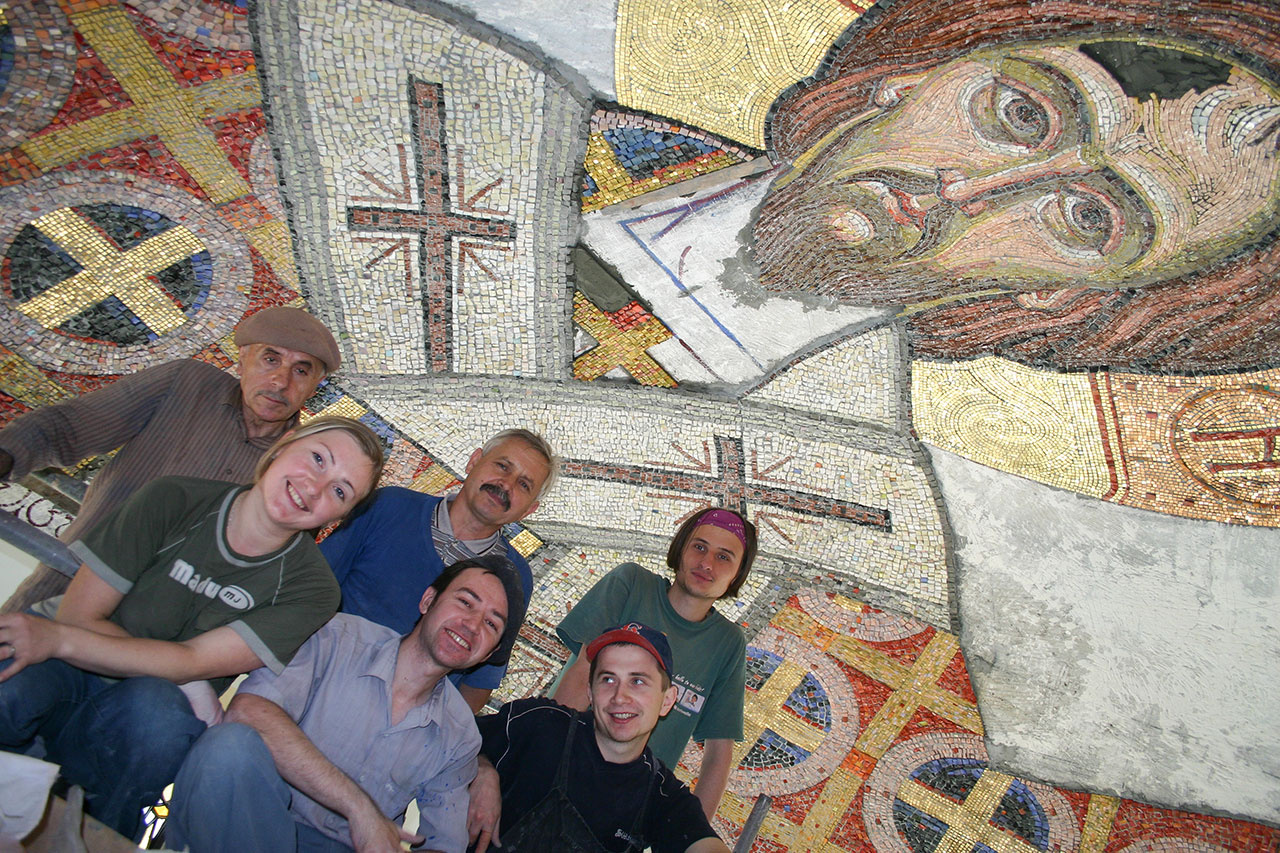 — Ясно. Цікаво. Ну бачите… Тобто, базуючись на цьому, власне вже в подальшому, очевидно, були залучені на кафедру квіліфіковані, фахові педагоги, які, навчивши студентів, і тепер молоді студенти, включно з викладачами нашої кафедри, вже творять це сучасне сакральне мистецтво. Як можна охарактеризувати те що зараз твориться, те, що створюють наші викладачі? В якому напрямку? Як би термінологічно можна це було б охарактеризувати на Вашу думку? Бо все ж таки, якщо би це було модерне, модерний – це просто є сучасний, і говорити «сучасність» про сучасність, тобто і десь тут є неовізантійський напрямок, так умовно десь наша кафедра, так вона бере цей напрямок. Є реалістичний напрямок, в якому ніби ми так не дуже працюємо, більше Київ, Стороженко, які брали собі українське бароко за основу. Але в той же час наші випускники, які трохи пробують себе в цій стилістиці, наприклад Олексій Чередніченко, Колодка Сергій. І є так званий, як ми називаємо під впливом стилістик модернізму, як ми так умовно називаємо, те що робить Святослав Владика, Данило Мовчан, Люба Яцків і інші.