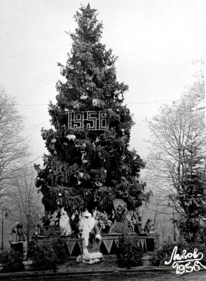 Ялинку прикрашали різноманітними прикрасами, переважно релігійного спрямування, а також ставили на верхівку зірку, традицію якої можна пояснити двояко: це або в честь народження Ісуса Христа або це була зірка Давида в честь Хануки. Адже новий рік всі святкували спільно – й католики, й православні, й іудеї. Початок року святкували просто, переважно їли лише канапки та шампанське. Так було до Другої світової війни. А після – все змінилося. Ще під час війни німецька окупаційна влада заборонила святкувати новий рік спільно з іудеями. Вважаючи, що жиди повинні святкувати новий рік й Хануку у гетто. Українці ж з поляками теж відокремились, святкуючи окремо новий рік, святого Миколая та Різдво. Після війни, в результаті голокосту, третина львів’ян була знищена, згодом внаслідок еміграції значної частини населення на Захід, а потім й після депортації на Схід, вийшло так, що корінних львів’ян залишилось у меншості. Багато з інших регіонів СРСР поселились у Львові, а також урбанізація сіл призвела до того, що новий рік став скоріше ідеологічним атрибутом. Якщо в 1939-му і в 1940-му роках були Дєдушка Мороз і святий Миколай, і Санта Клаус (польський), то після війни – діток розважав Дєдушка Мороз зі Снігуркою, а шампанське з канапками замінили горілка й олів’є. Ялинку стали прикрашати зіркою Радянського Союзу. Після краху СРСР відбулось історичне змішання традицій, тож зараз ялинку прикрашають і кульками, ірелігійними атрибутами.