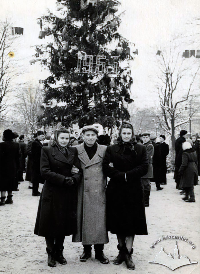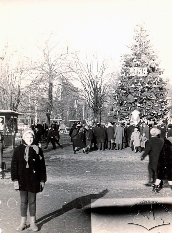 Розміщення головної ялинки міста теж мало свою історію. До початку 50-х років її ставили там де і зараз – поруч з Оперним театром. Проте, з 1952 року в цьому місці розмістився Ленін, тому необхідно було знайти інше місце для зеленої красуні. Її ласкаво прийняла клумба, що виникла замість монументу Яну III Собєському. В цьому місці ялинка розміщувалась до початку 70-х років, поки її не перенесли з Центру аж до парку Культури. Таку зміну влада пояснювала великими розмірами парку, що міг вмістити більшу кількість охочих відвідати ялинку, а також практичністю, оскільки біля ялинки була встановлена ковзанка, яку б розмістити на головному проспекті в Центрі просто б не змогли. Проте, справжні причини крились у вертепах, які попри заборону збирались під ялинкою в центрі міста. Під ялинку в парку культури шанувальники народних традицій не наважувались іти, адже поруч, в теперішній будівлі СБУ, розміщувалось КДБ.