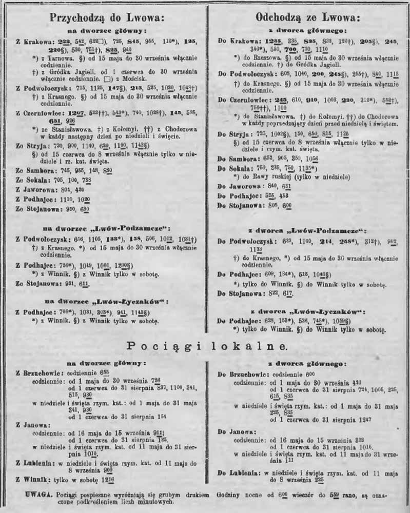 На той час (за розкладом, що був введений в дію із 1 травня 1913 р.) Личаківський вокзал приймав в напрямку до Львова щоденно чотири поїзди зі сторони Підгаєць: о 07:08 із Винник, о 10:31 із Підгаєць, о 15:03 із Винник та о 21:41 із Підгаєць. По суботам о 23:43 прибував також поїзд із Винник. В напрямку Підгаєць (зі Львова) щоденно потяги відправлялися о 06:28 до Підгаєць, о 13:53 до Винник, о 17:36 до Підгаєць та о 19:45 до Винник. По суботам о 20:59 відправлявся іще один поїзд до Винник. Таким чином, вагони маршруту «Н» робили щодня тільки 8 рейсів.