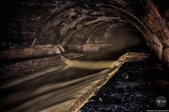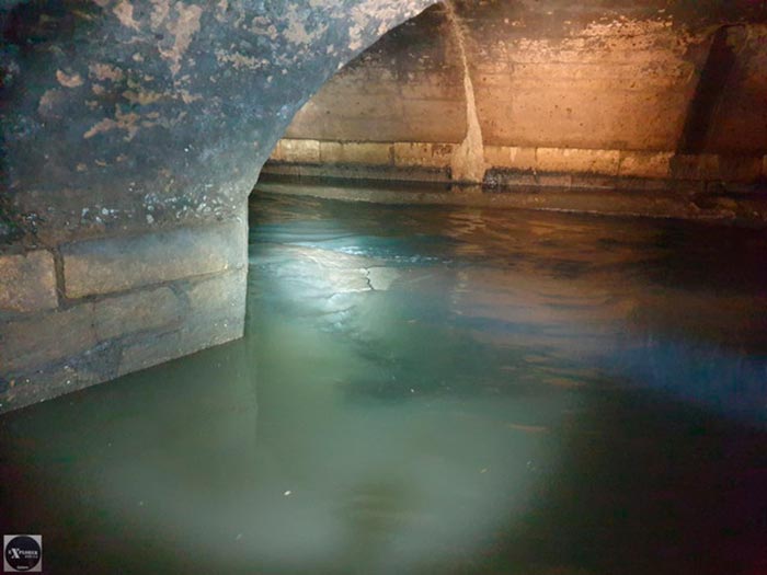 Притока з Погулянки. Саме на місці її впадіння в Полтву і сталися руйнування. Видно що вода тут займає всю ширину колектораПритока з Погулянки. Саме на місці її впадіння в Полтву і сталися руйнування. Видно що вода тут займає всю ширину колектораЧерез тридцять метрів рівень води падає. Потім ще падає і вода стає текти там де і повинна. Тобто внизу по течії є сміття і воно піднімає рівень води. А вода камінь точить.Притока Пасіка з Погулянки. Видно як піднімалася вода в зливуЦя труба через колектор явно не сприяє покращенню пропускної здатностіЦя труба через колектор явно не сприяє покращенню пропускної здатності