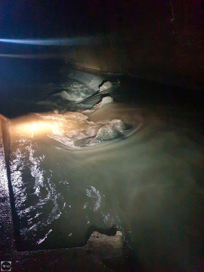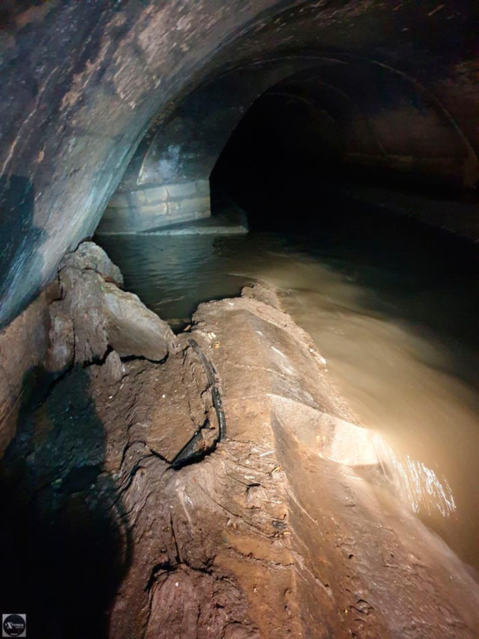 Куски бетону, які забрала вода, лежать десь внизу по колектору затримуючи рух води. Тим самим сприяючи затопленню вулиць міста в зливу