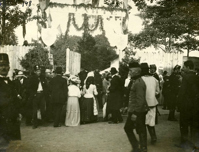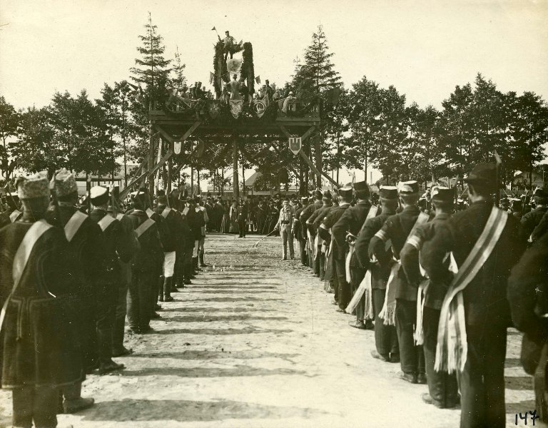 ![Вхід на площу «Сокола-Батька» оздоблений емблемами товариств «Січ», «Сокіл», «Україна». Львів, площа «Сокола-Батька», 28 червня 1914 р. Підпис Степана Гайдучка: «Публика входить на площу С[окола]-Б[атька]. Зліва австрийський службовець в характеристичній шапці, гімназисти в приписаних шапках (буква «Ґ»), селянки, інтелігент в чорному одязі, хтось в австрийській військовій блюзі, два мійські поліцисти з півмісяцем на груди замовлені для держання порядку при вході». З приватного архіву Степана Гайдучка (м. Львів).](https://photo-lviv.in.ua/wp-content/uploads/2021/07/rys.-08.jpg)