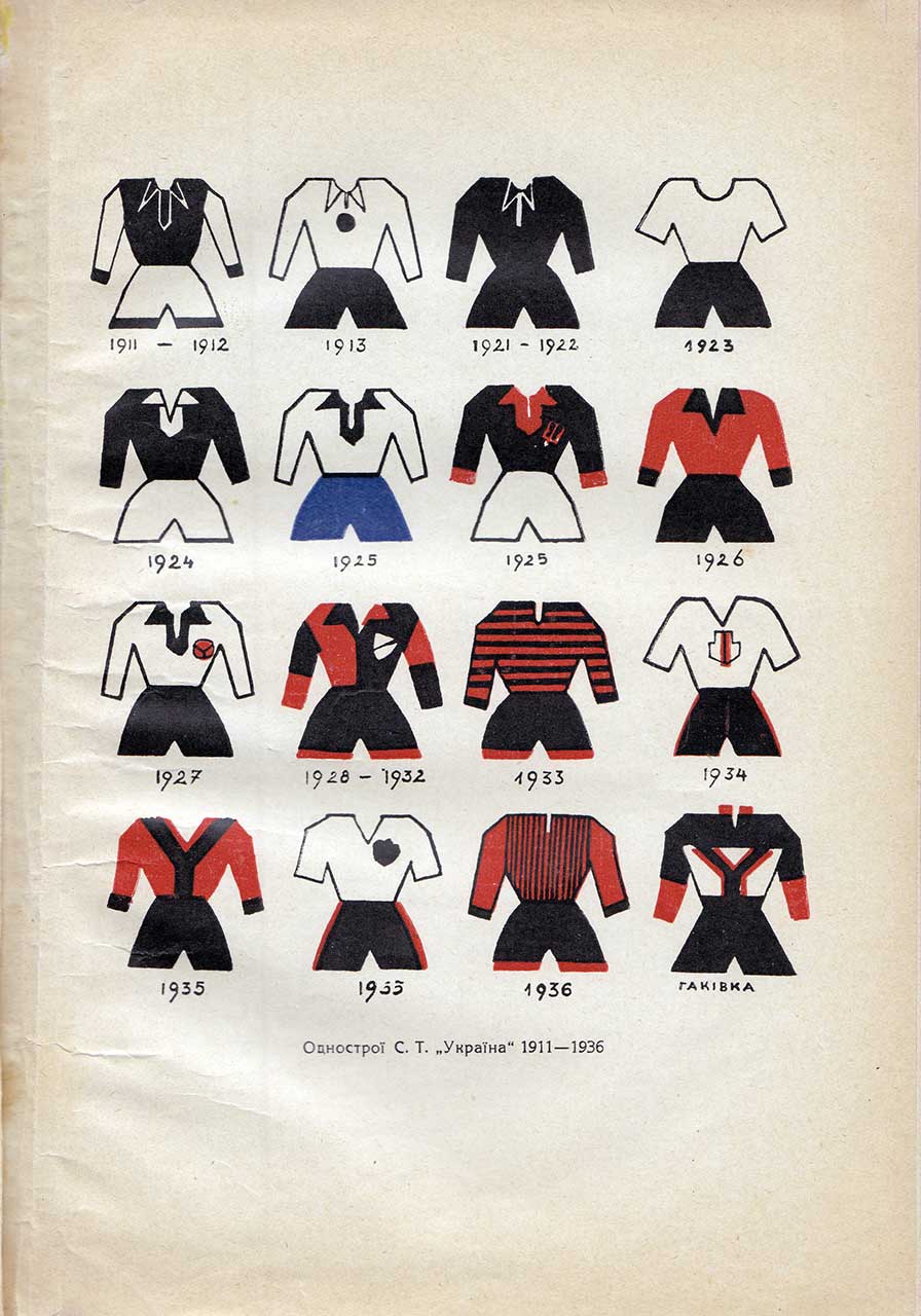 Кольори. Основними кольорами спортового товариства «Україна» були червоно-чорні. У статуті товариства, виданому у 1937 р. у § 2 зазначалося: «Красками Товариства є краска червона-чорно-червона у відношенні 1:3:1». Така кольористика присутня практично на всіх одностроях організації у 1920–30-х рр., прапорах, фірмових бланках, організаційних виданнях тощо. На багатьох заходах СТ «Україна» вивішувалися організаційні прапори. Зокрема, це було у Львові 18–19 вересня 1926 р. з нагоди 15-ліття створення товариства.