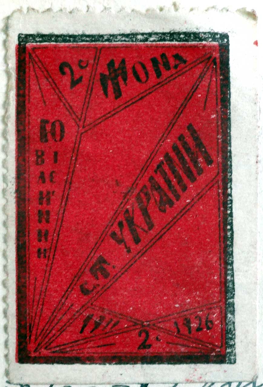 Марки. Великого розповсюдження в організації набули марки. Випускалися вони з метою пропагування ідей товариства, а також для збору коштів на організаційні потреби. Червоно-чорне сполучення кольорів використано на марці спортового товариства Україна, виданій у Львові 1926 р. (Іл. 14). Марка, розміром 29х43 мм, частково зубкована, містить напис: «Ювілейний фонд СТ Україна». Вона з’явилася з нагоди 15-ліття існування організації. Один її примірник виявлено в ЦДІА України у Львові, зокрема на листі Степана Гайдучка до Івана Боберського, датованого 22 березня 1927 р. У 1926 р. видано ще дві марки товариства.