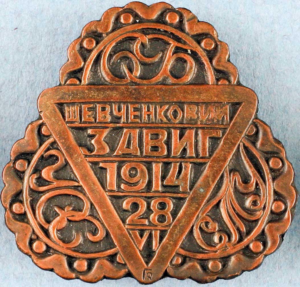 Відзнаки, нагороди. Першою відзнакою СТ «Україна» була із зображенням грецького юнака з щитом та здійнятим над головою мечем. Відомо декілька модифікацій такої відзнаки. У 1914 р. за задумом Івана Боберського інженер Роман Грицай створив відзнаку для Шевченківського здвигу, який відбувся 27–29 червня 1914 р. у Львові з нагоди 100-річчя від дня народження Тараса Шевченка. Відзнака мала форму трикутника, при сторонах якого містилися півкруги. В них поміщено букви: «С. Б.», «У. С. С.», «С. Т. У.», тобто абревіатури назв тих організацій, які проводили здвиг, відповідно – «Сокіл-Батько», Український січовий союз та Спорове товариство «Україна». В середині трикутника розташовувався напис: «Шевченковий здвиг 1914, 28. VІ». На вістрі нижнього кута трикутника монограма «G R» (Роман Грицай). Ця відзнака, випущена у Відні коштами «Сокола-Батька» та Українського січового союзу. Тираж, як на той час, був досить великим – 10 тисяч із білого металу і 100 штук із міді. Форму трикутника на думку Степана Гайдучка взято для того, щоби кожен, хто чіпляв відзнаку до одягу, міг обернути її так, щоб назва його товариства була зверху. Одна така відзнака зберігалася у міжвоєнний період у культурно-історичному музеї Наукового товариства Шевченка у Львові, а згодом передана до Історично-воєнного музею НТШ. Декілька таких відзнак сьогодні зберігаються у Львівському історичному музеї.