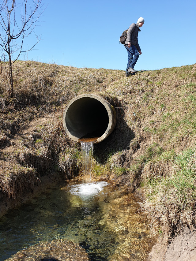 Приємно йти по дренажним колодязям. Ні тобі каках, ні бруду, ні щурів. Зато є мул. То ж місцями приходилося радше йти на четвереньках, ніж на своїх двох. Бо місця зовсім мало. Доволі скоро ми дійшли до характерного кільця під розділюючою смугою на вул. Вернадського. Воно накрите величезною круглою бетонною плитою яку добре видно ззовні.