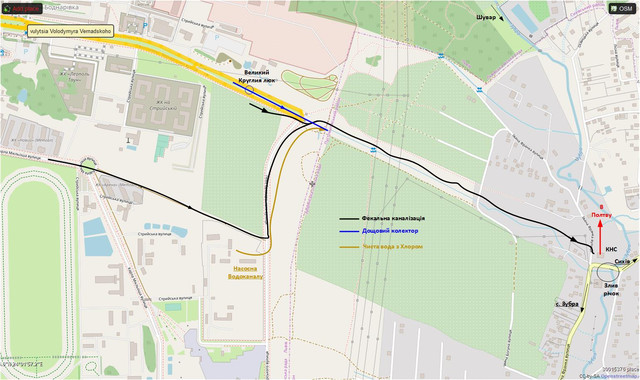А це вже ділянка полем між Вернадського на Автовокзалі і Вернадського на Сихові. Та сама фекалка і характерні бетонні тюбінги