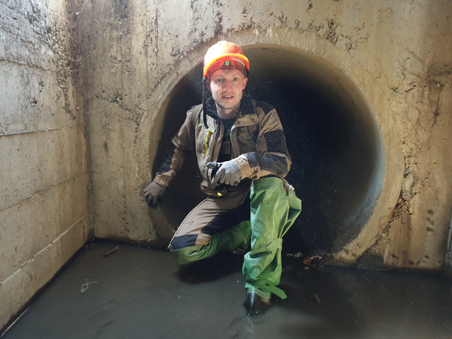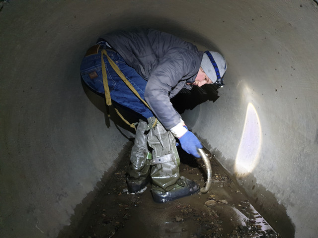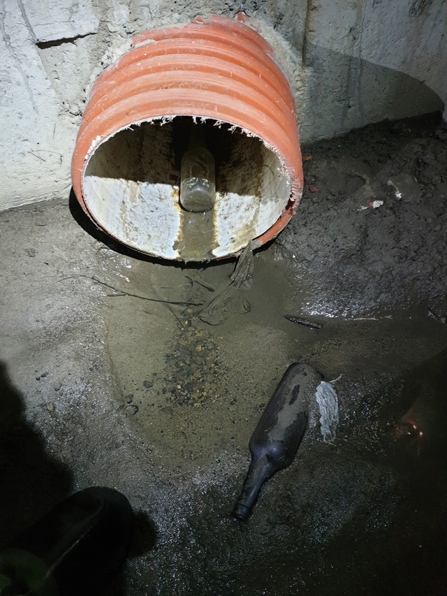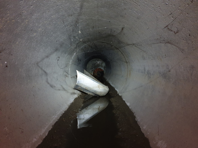 Далі в сторону автовокзалу пішла вузька пластикова труба. Дмитро по ній троха просунувся, але очевидно що далі вона буде ще вужча. То ж ми лишаємся цього діла та вертаємося назад.