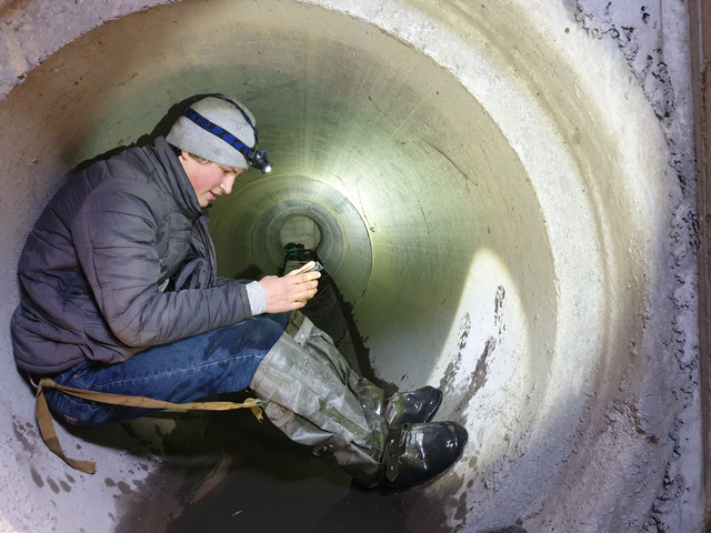 Ми зайшли в колектор з відкритої частини річки. Кругла труба діаметром десь півтори метри. Якшо трішки пригнутися то можна впевнено йти в сторону Автовокзалу. Зі мною ще був Дмитро в колекторі і Олександр нагорі. Карантин як не як, більше двох в колектор зась!