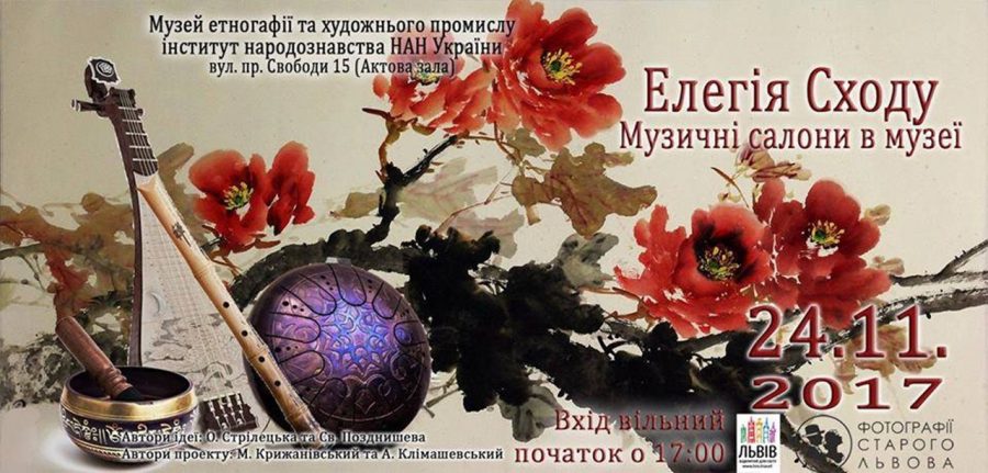 Вже завтра, 24 листопада 2017 року, о 17.00 Музей етнографії та художнього промислу ІН НАНУ (м. Львів, проспект Свободи, 15) запрошує Вас відвідати Музичний салон в музеї «Елегія Сходу». Вхід вільний.