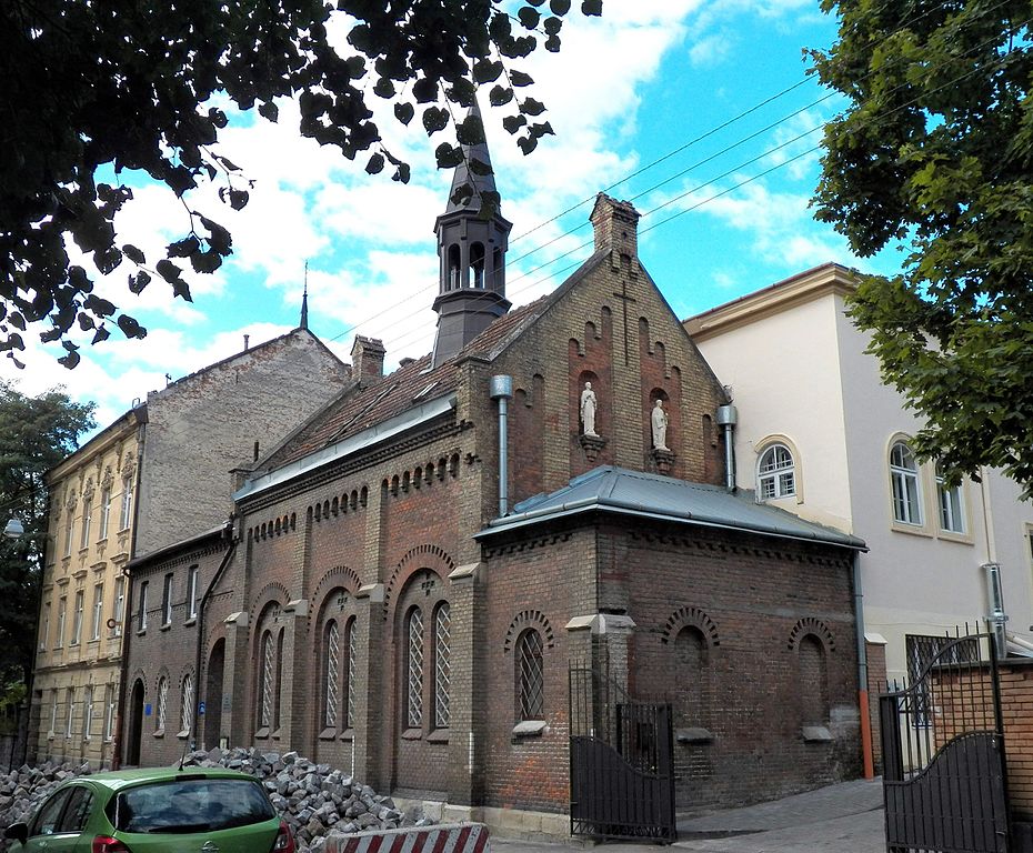 Каплиця була збудована у 1889-1890 рр. за проектом Юзефа Каетана Яновського. Дуже помітним було прагнення Яновського стилістично пов’язати монастирський комплекс із вже існуючою на цих теренах будівлею Монастиря францисканок, який був спроектований Ю. Захаревичем. Фасад був декорований цеглою двох кольорів (звичайної теракотової і жовто-охристої) і розділений на три секції контрфорсами.