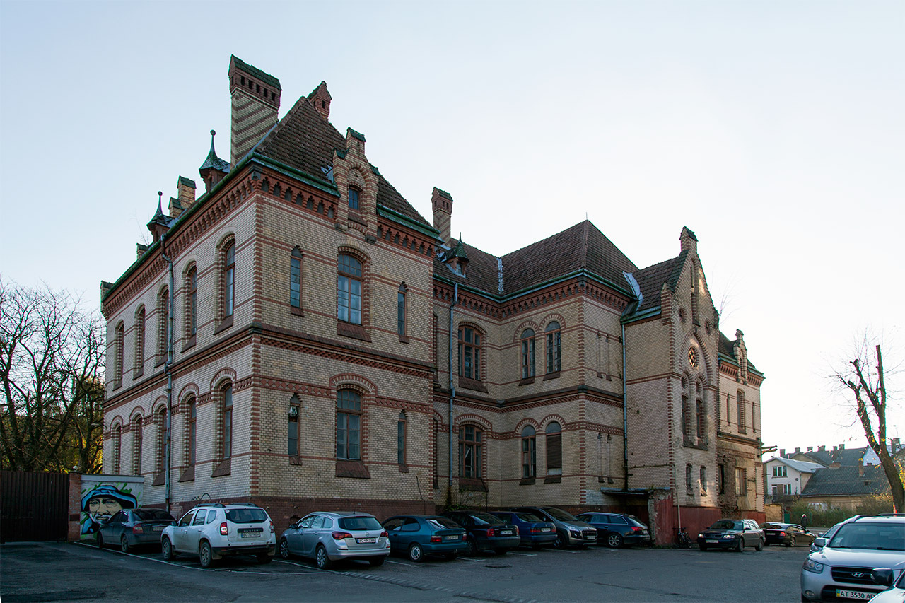 Ансамбль виконано в еклектичному поєднанні романської та готичної архітектури, використано новинку – профільну цеглу. Поєднання у декорі світло-жовтої та темно-охристої цегли створює особливу ритміку фасадів, ґрунтовану на традиціях українського мистецтва.