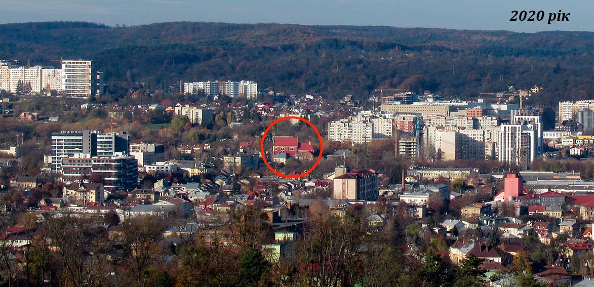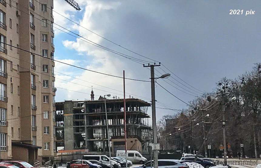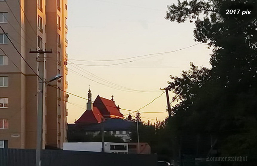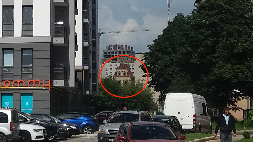 І якщо ще не так давно найвищим об’єктом вулиць Замарстинівська, Торф’яна, Миртова і Лінкольна була церква св. Йосафата (на фото 1-4 – обведена червоним колом), то в наш час цей храм з деяких вулиць майже не видно.