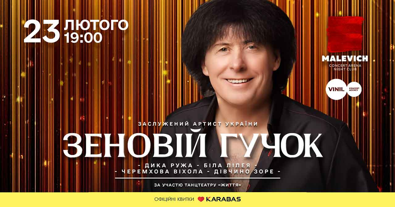Легендарний український співак Зеновій Гучок готує особливий подарунок для своїх шанувальників. Вже 20 лютого на сцені концерт-арени «Малевич» відбудеться його великий сольний концерт, який обіцяє стати справжньою подією у культурному житті міста. Початок події о 19:00, зазначають організатори VINIL concert agency.