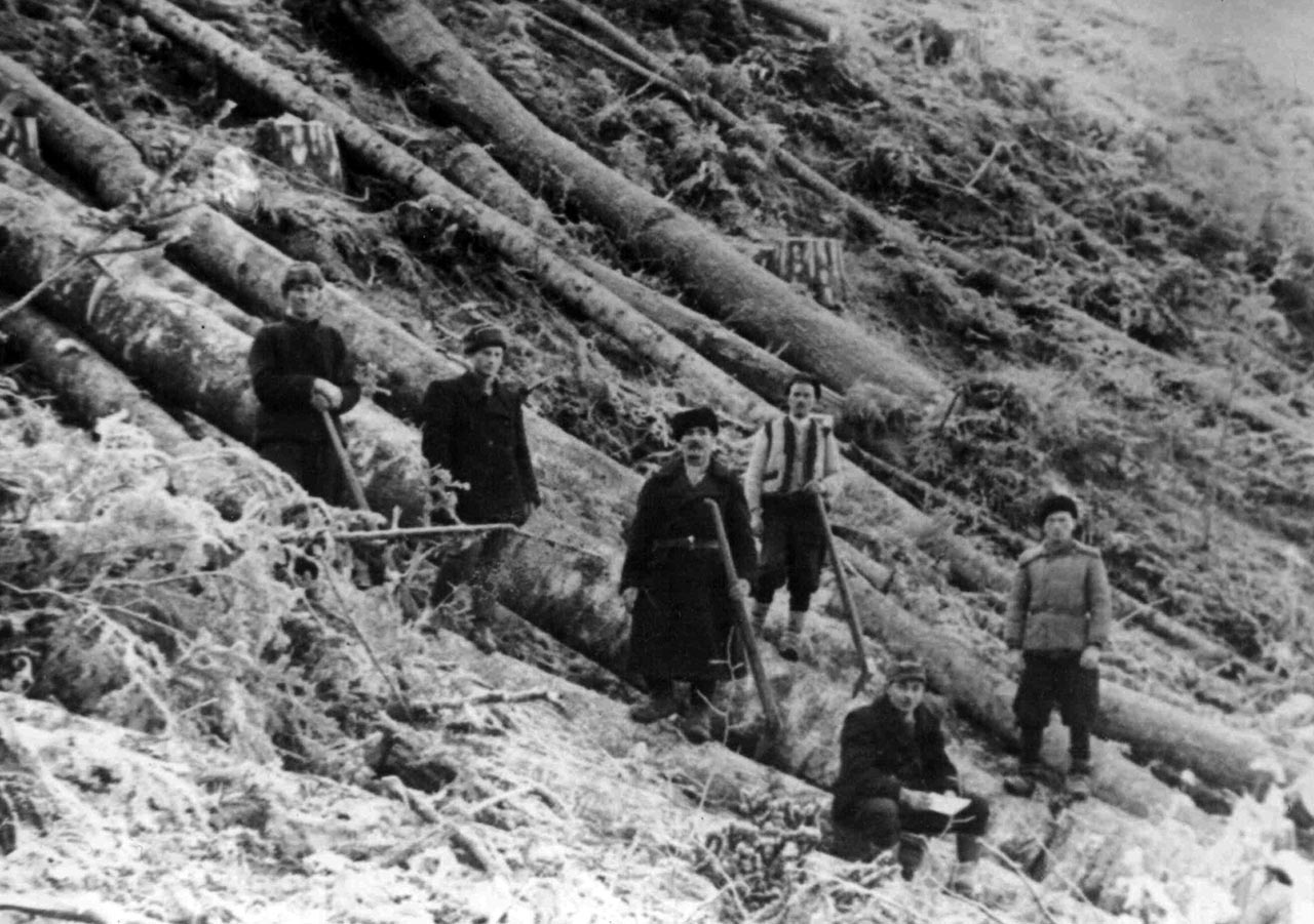 Перепроважувані вируби лісів через Адміністрацію Державних Лісів на Гуцульшіні, видойграют в житю Гуцула дуже велику ролю. Перiорєдну. Лісовий промисл в околицях заселених Гуцулами в чєсі перед воєнним в державних лісах й тартаках був проважений переважно через концесіонарів. Однако, та обставина, шо державні ліси були одиноке жерело доходу й добробуту місцевого населеня, була майже без впливу на місцеві господарскі видносини, бо лісові пидприємства були проважені через концесіонарів. Усі тоти фірми були фінансовані головно через чюжі капітали. Тоти фірми визискували місцеве населенє в нимилосердний спосіб, дбаючі лиш про то, аби забезпечіти собі на лісовій маніпуляції єк найбірші зиски, а про місцевих робітників нічьо ни дбали, тай ними си взагалі ни журили. Наслідки тої господарки, то з одного боку зпльондровані ліси, а з другого збідніле гуцульске населенє.
