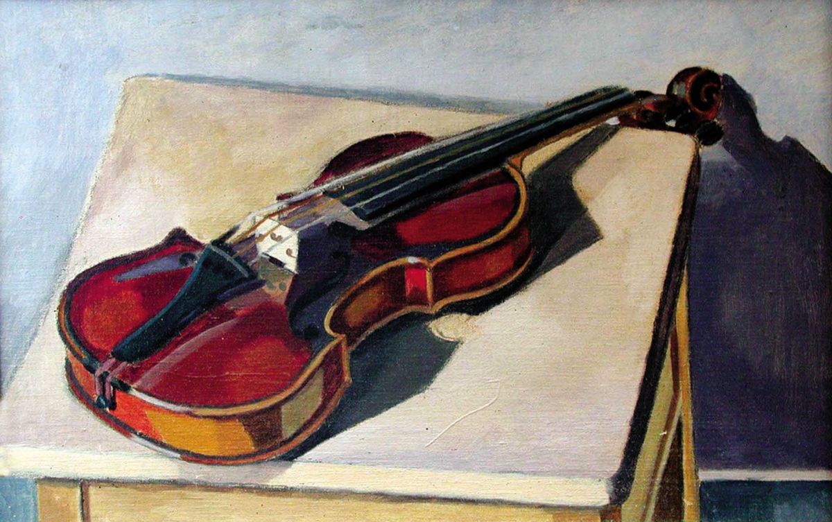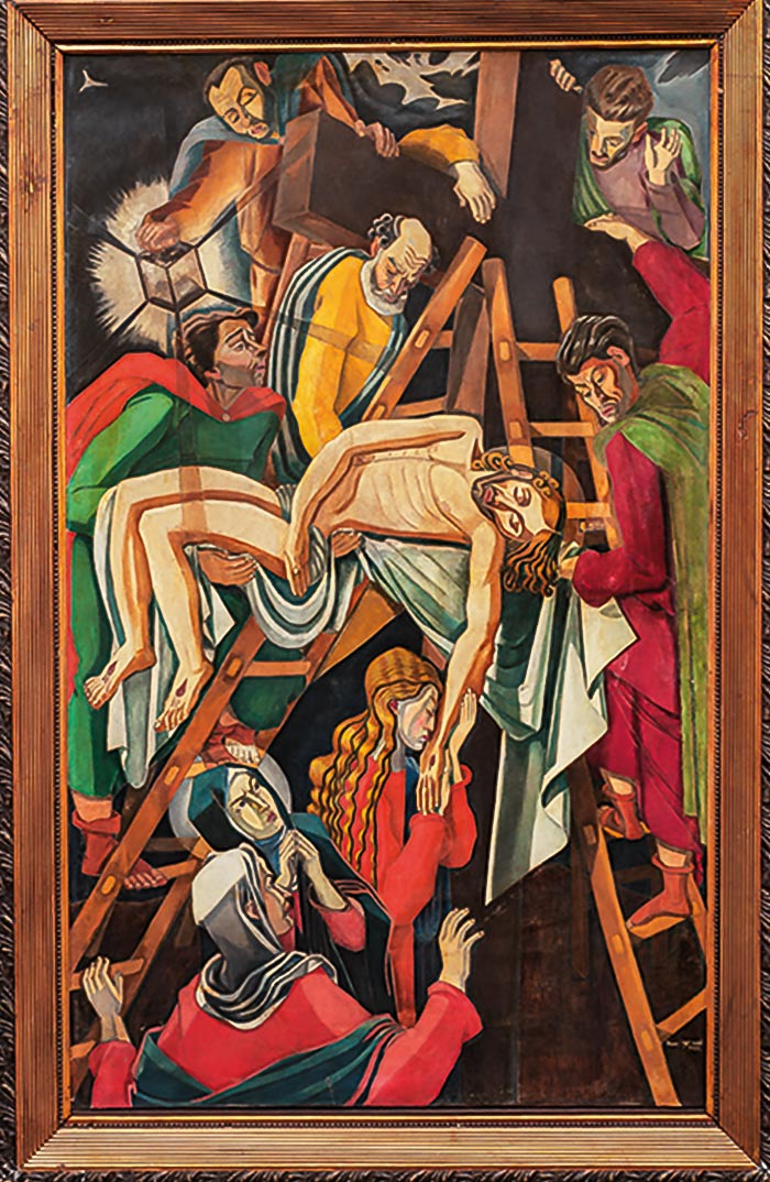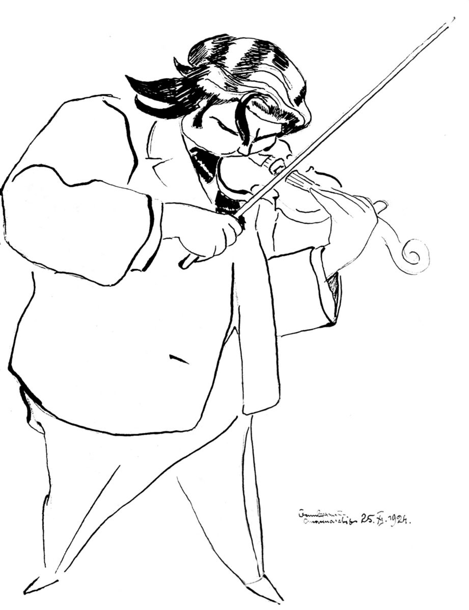… В порівнянні з карикатурами — олійні праці стояли в нього на дальшому місці. В них помітне перш усього змагання зі собою за нову форму, кольорит, за нові проблеми в малярстві.