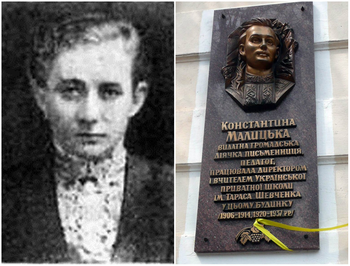 «17 лютого 1915 р. була заарештована Константина Малицька, яка більше трьох місяців перебувала в тюрмі на вул. Баторія. Згодом вона писала: “Єдиною нашою провиною було, що ми “мазепинці”, і не вітали російської армії хлібом-сіллю”. 28 травня 1915 р. Константину Малицьку (єдину жінку) у числі 13 видатних діячів (д-р Микола Шухевич, д-р Василь Нагірний, д-р Володимир Охримович, д-р о. Йосиф Боцян, д-р Юліян Балицький, Кость Паньківський, Тимотей Старух, Микола Курцеба, Осип Неділко, Йосиф Гродський та ін.) етапом через Москву було відправлено в Красноярськ, а звідти – по Єнісею в Тунгуський край. Константина Малицька відбувала покарання в селі Пінчуга над Ангарою… Після Лютневої революції 1917 р. в Росії Константині Малицькій вдалося вирватись з глухомані, якийсь час вона проживала в Єнисейську. У вересні 1919 р. прибула до Красноярська, за дорученням “Української громади” (голова – професор В’ячеслав Яновицький) організувала в будинку українського патріотичного подружжя, колишніх політв’язнів Катерини та Михайла Антонових, школу ім. Івана Котляревського, була в ній першою вчителькою та директором. Наприкінці липня 1920 р. Константина Малицька вирішила повернутись на Україну, потягом доїхала до Москви, а відтак – до Петербурга, а у вересні 1920 р., через п’ять років, повернулася до Львова, де її урочисто вітала українська громада. Константина Малицька зразу ж зголосилася до вчительської праці в школі ім. Т.Шевченка, де невдовзі стала директором» ⁶.