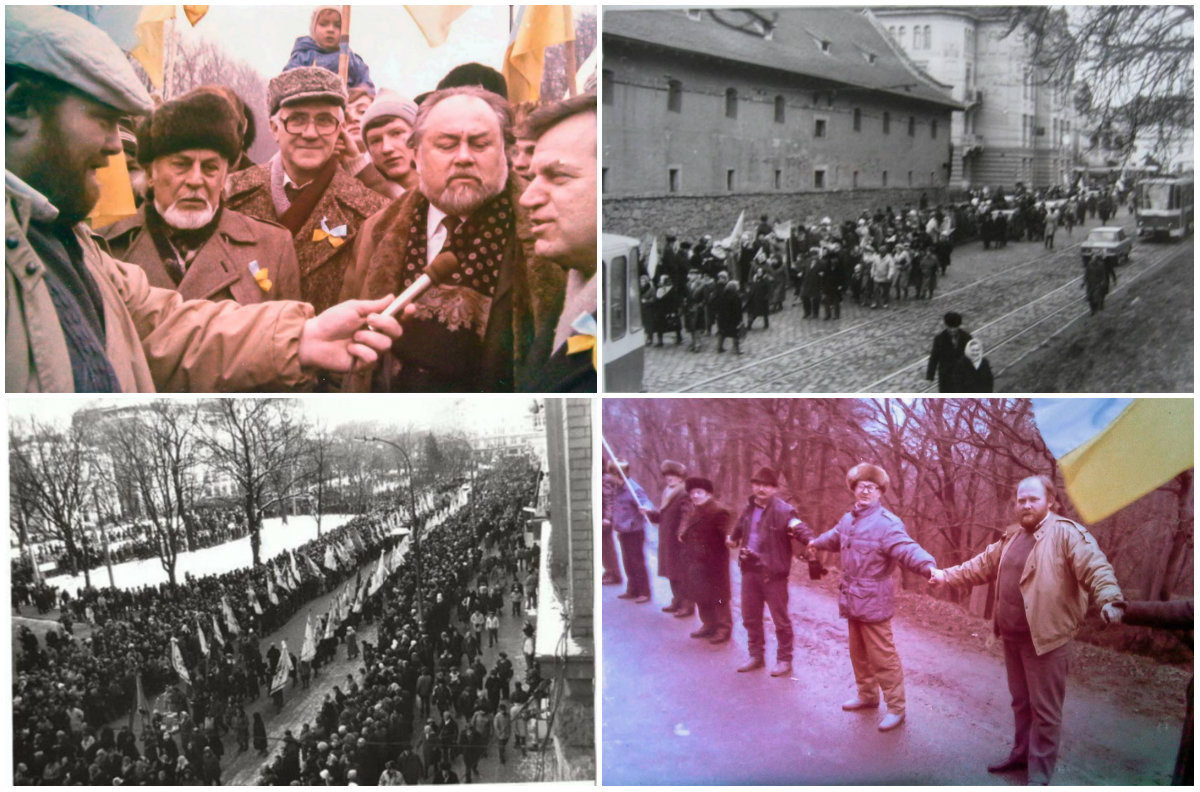 21 січня 1990 року Галичина відзначала день Злуки ЗУНР і УНР в єдину соборну державу. Ланцюг єднання мав простягнутися від західного до східного кордону УРСР. По всій «неозорій Батьківщині» ще совєцька влада, а Львів вже звично обрядився у синьо жовте! Національні стяги повсюди: на транспорті, балконах, вікнах, стовпах, а найбільше – у руках містян, які ватагами та поодинці снували містом.