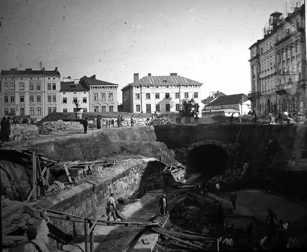 За Австрії річка Полтва пахтіла так само, як венеційські канали. І хоча багато львів’ян, описуючи ту епоху, згадували приємніші запахи, що долинали з цукерень, колоніальних крамниць, де торгували екзотичними овочами (себто фруктами), крамниць з гербатою і кавою Едмунда Рідля та Юліуша Мейнля, а все ж сморід, мухи, комарі робили своє. Тому в 1886 році вирішено було річку заклепати під землю.