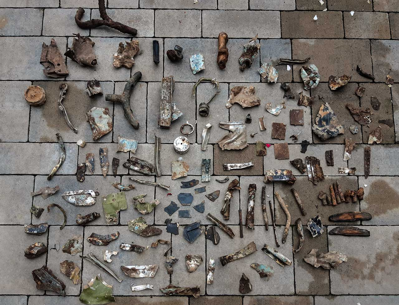 Багато гільз калібру 7.62 . Пізніше з’ясували що всі 1939 року випуску. Також знайшли частини обшивки пофарбованих зеленою фарбою, частини від акумуляторів, від поршневої системи двигуна, уламки текстоліту, обгорілої дельта-деревини, скла від кабіни та інше.
