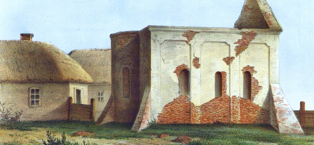 «В 1864 году, вследствие настоятельного со стороны гражданской власти требования о немедленной разборке этих развалин, в предупреждение опасности от их падения, местная волынская духовная консистория, не имея средств приступить к разборке здания хозяйственным способом, нашлась вынужденною продать его с торгов, и еврей купил его за весьма ничтожную цену, 500 р. Грустное впечатление на народ от разломки евреями столь драгоценного памятника православия побудило Министерство Внутренних Дел уничтожить эту продажу, с вознаграждением купившего здание денежною сумою. Однако пока шла переписка евреи успели воспользоваться временем для сломки главного купола и трех стен церкви и увезти большую часть добытого материала. Ныне от Крестовоздвиженской церкви остается нетронутою одна алтарная часть».
