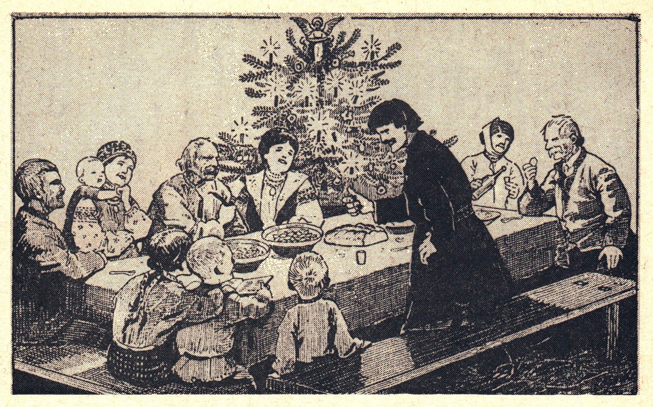 “Прошу порадити мені, як накрити стіл на святий вечір; я чужинка і не знаю ваших звичаїв, а хотіла би зробити чоловікові приємність на першім святім вечорі в новій рідні”. Чехословачка.